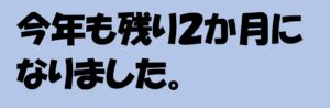 今年も、残り2か月、本年度(4月を基準に考えて)は残り5カ月程度となりました。