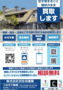 買取の強化をしています。不動産の売却をしたい方は、無料で査定させていただくますので、ぜひ、弊社までご連絡ください。資源の有効活用。空き家対策などに貢献していきたいと思います。今後とも宜しくお願い致します。