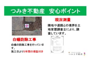 また、鍵交換、測量も売主負担で行いますので、近隣との境界争いもなく安心です。