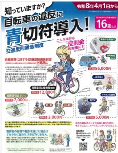 令和8年4月1日から、自転車の違反に青切付が導入されます。
